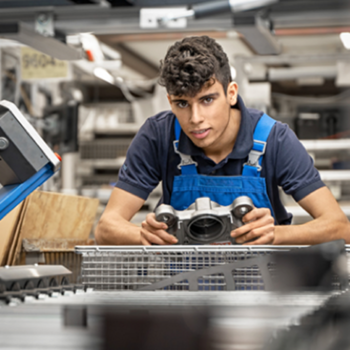 Während deiner Ausbildung lernst du die metalltechnischen Kernqualifikationen wie das Herstellen von Bauteilen und Baugruppen, die Anwendung von Steuerungstechnik und das Warten von Betriebsmitteln. Außerdem vertiefst du dein Wissen in der Montagetechnik. Hier steht die Montage und Demontage von Baugruppen und Endprodukten im Vordergrund und du erhältst dort Einblick in die verschiedenen Prüfverfahren.